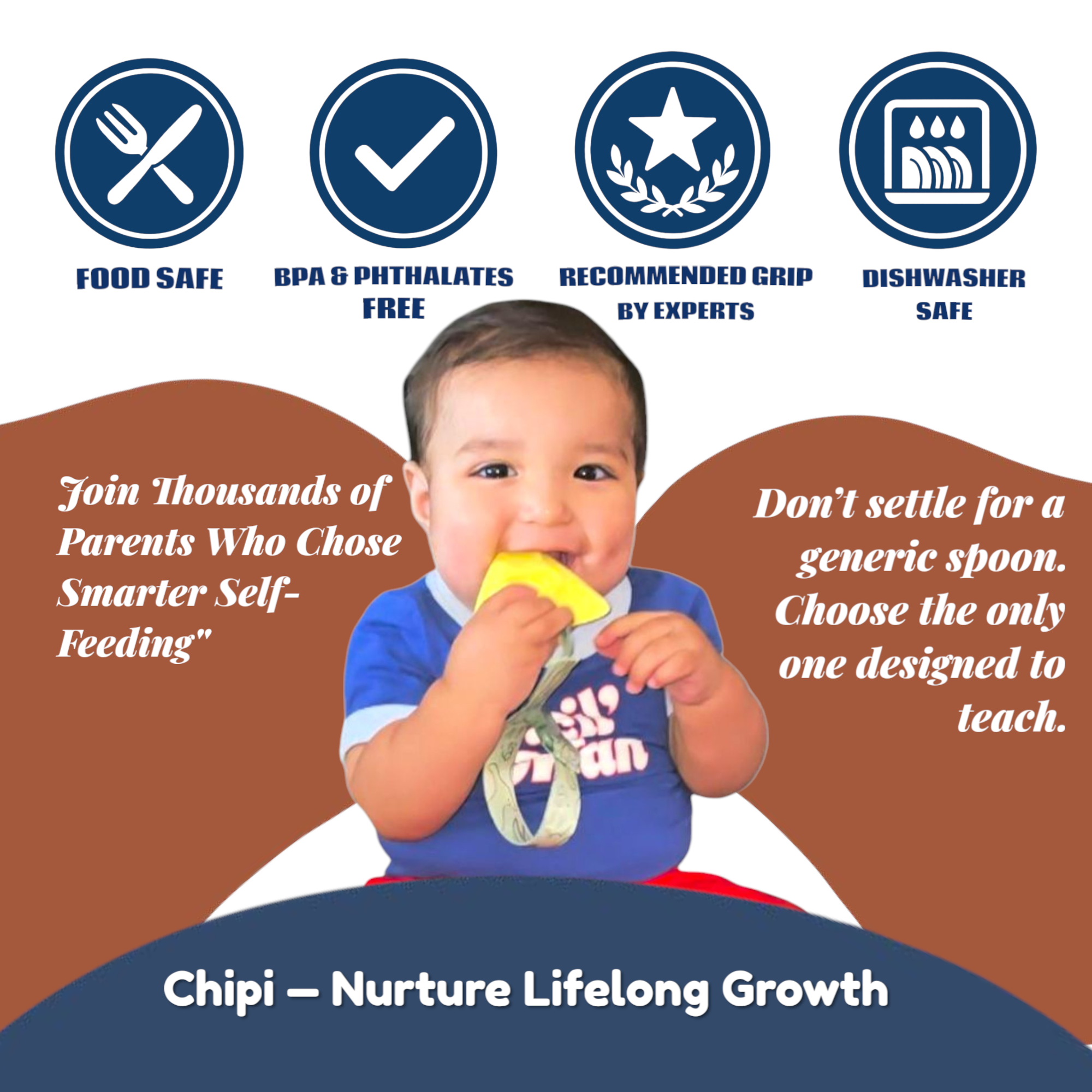 Chipi automatically develops a tripod grasp which is needed for coloring, drawing, writing, and self-feeding.